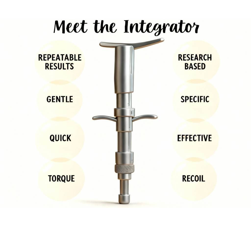 The Integrator is a revolutionary FDA-approved chiropractic adjusting instrument which combines the best of the existing chiropractic techniques and principles, quantum physics, and the body-mind connection. It is the only chiropractic instrument developed from randomized clinical trials and backed by extensive research from the University of Miami School of Medicine.